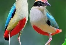 绿胸八色鸫:是雀形目八色鸫科的鸟类,共有12个亚种。体长为16-18厘米,体重65-69克。体型圆胖,尾短,腿长。头黑,上体绿色,两翼深色而具白色斑纹,头顶至后枕深褐,胸及腹部苹果绿,臀亮红。…全部>>