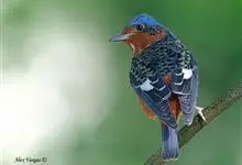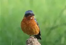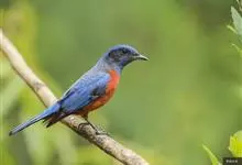 栗腹矶鸫是鸫科、矶鸫属小型鸟类,体长20-25厘米。雄鸟上体呈辉亮的钴蓝色,两翅黑褐色,喉蓝黑色,其余下体栗红色。雌鸟上体橄榄褐色,背具黑色鳞状斑,下体棕白色密杂以黑褐色横斑,黑白相衬,极为醒目,…全部>>