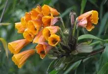 大苞萱草是阿福花科科,萱草属多年生草本植物,根状茎;根多少呈绳索状,叶片柔软,上部下弯。花萱与叶近等长,在顶生2-6朵花;苞片宽卵形,先端长渐尖至近尾状,花近簇生,花被金黄色或桔黄色;蒴果椭圆形,…全部>>