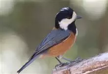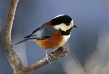 杂色山雀,是山雀科山雀属的一种动物。体重17-18克,体长125-140毫米。雌雄羽色相似。额、眼先、耳羽至颈侧乳黄色,头顶至后颈黑色,后头中央有一白斑。上背栗色,上体余部及翼蓝灰色。颏、喉黑色,…全部>>