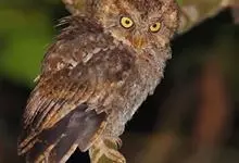 黄嘴角鸮:小型鸟类,体长18-21厘米。的茶黄褐色角鸮。眼黄色,嘴奶油色,特征为无明显的纵纹或横斑,仅肩部具一排硕大的三角形白色点斑。主要栖息于海拔2000米以下的山地常绿阔叶林和混交林中,…全部>>