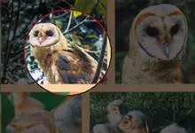 栗鸮:是鸟纲、草鸮科的猫头鹰。体长约29厘米,体重311-360克。是一种中等体型的红褐色鸮。其心形脸庞及时而竖起的“耳朵”与仓鸮甚似。上体红褐而具黑白点斑,下体皮黄偏粉具黑点,脸近粉色。虹膜深褐色,…全部>>
