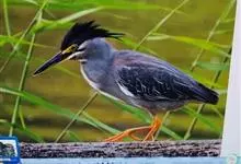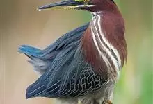 绿鹭:是鹳形目鹭科绿鹭属鸟类。体型小,头顶黑,枕冠亦黑色,上体蝉灰绿色,下体两侧银灰色;前额至后枕及冠羽墨绿色,眼后有一白斑,颊纹黑色;颚纹白色,后颈、颈侧和体侧烟灰色;背部披灰绿色矛状长羽,…全部>>