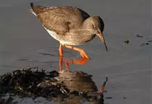 红脚鹬:体长28厘米,上体褐灰,下体白色,胸具褐色纵纹。飞行时腰部白色明显,次级飞羽具明显白色外缘。尾上具黑白色细斑。虹膜黑褐色,嘴长直而尖,基部橙红色,尖端黑褐色。脚较细长,亮橙红色,…全部>>