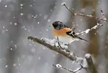 燕雀属小型鸟类,体长14-17厘米。嘴粗壮而尖,呈圆锥状。雄鸟从头至背辉黑色,背具黄褐色羽缘。腰白色,颏、喉、胸橙黄色,腹至尾下覆羽白色,两胁淡棕色而具黑色斑点。两翅和尾黑色,翅上具白斑。…全部>>