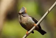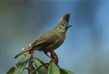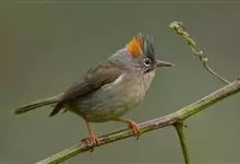 纹喉凤鹛:小型鸟类,体长13-16厘米。头顶和羽冠暗褐色或褐灰色,上体橄榄褐色,飞羽黑褐色,外侧次级飞羽表面橙黄色,构成一块纵形翼斑,极为醒目。颏、喉淡棕白色,具黑色纵纹,腹和尾下覆羽橙黄色。…全部>>