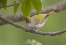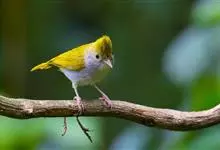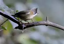 白腹凤鹛是绿鹃科、绿凤鹛属的小型鸟类,体长10-12厘米。上体从头到尾黄绿色,有短的羽冠,头顶微具黑色羽轴纹;眼先、眼周,耳羽和下体灰白色,尾下覆羽黄色。虹膜褐色或红褐色,上嘴浅褐色或肉褐色,…全部>>