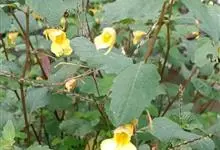 水金凤:是凤仙花科,凤仙花属一年生草本植物,高可达70厘米。茎肉质,直立,叶互生;叶片卵形或卵状椭圆形,边缘有粗圆齿状齿,上面深绿色,下面灰绿色;叶柄纤细,总状花序;苞片草质,披针形,花黄色;侧生萼…全部>>