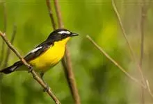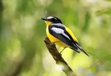 白眉姬鹟是小型鸟类,体长11-14厘米。雄鸟上体大部黑色,眉纹白色,在黑色的头上极为醒目。腰鲜黄色,两翅和尾黑色,翅上具白斑。下体鲜黄色。雌鸟上体大部橄榄绿色。腰鲜黄色,翅上亦具白斑。下体淡黄绿色。…全部>>