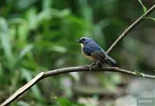 棕胸蓝姬鹟:属小型鸣禽,体长10-13厘米,体重6-10克,是一种体型很小的灰蓝及棕色鹟,雌雄羽色不同,雄鸟羽色艳丽,雌鸟羽色暗淡。雄鸟上体深蓝色,胸橙黄色,下腹灰白色。亚成鸟具褐色斑驳。…全部>>