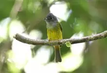 方尾鹟:体重6-11克,体长102-130毫米。是一种体型小而独具特色的鹟。头偏灰,略具羽冠,嘴扁平,嘴基宽阔几成等边三角形,嘴须发达长而多,几达嘴端口;头顶至后颈黑灰色,背橄榄绿色,两翅和尾黑灰色,…全部>>