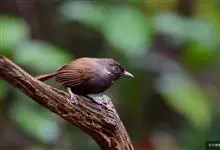 黑头奇鹛是噪眉科、奇鹛属型鸟类,体长20-24厘米。前额、头顶一直到后颈黑色具有金属光泽。头侧和耳羽暗褐色。上体褐灰色,尾羽暗褐色具灰白色端斑。飞羽褐色。外朔黑色。下体几纯白色,仅胸和体侧沾灰。…全部>>