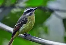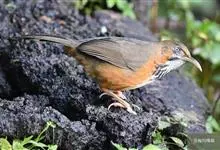 灰腹噪鹛是画眉科、噪鹛属鸟类。中型鸟类,体长21-25厘米。额黑色,头顶黑或灰色,眼先、脸白色。上体橄榄褐至棕褐色,尾和内侧飞羽具窄的白色端斑和宽阔的黑色亚端斑,外侧初级飞羽外翈蓝灰色或灰色,颧纹黑色。…全部>>