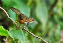斑胸钩嘴鹛是雀形目、画眉科、钩嘴鹛属的鸟类。体型略大的钩嘴鹛。无浅色眉纹,脸颊棕色。甚似锈脸钩嘴鹛但胸部具浓密的黑色点斑或纵纹。栖息于低山地区及平原的林地灌丛间,在林间作短距离飞翔。…全部>>