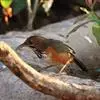 黑顶噪鹛:中型鸟类,体长24-26厘米。前额、脸、颏、喉黑色,头顶黑褐沾棕或深棕橄榄褐色,背栗褐或棕褐色,颧斑白色或棕红色,眼后缘和颈侧亦具白斑,飞羽金黄橄榄色而具蓝灰色尖端。下体淡棕褐色。…全部>>