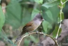 栗耳凤鹛,雌雄羽色相似。额、头顶至枕灰色,头顶有一短的不甚明显的羽冠,系由头顶羽毛向后延长形成、灰色具细的白色羽干纹,眼先灰色,眉纹白色不甚明显,其上有时杂有褐斑,…全部>>
