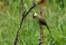 白领凤鹛是画眉科的一类动物。体长15-18厘米。头顶和羽冠土褐色,具白色眼圈,眼先黑色,枕白色,向两侧延伸至眼,向下延伸至后颈和颈侧,在颈部形成白领极为醒目。上体土褐色,飞羽黑色,…全部>>