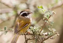棕头雀鹛为鸦雀科,褐鹛属小型鸟类,体长10-13厘米。头顶栗褐色具黑色侧冠纹。上体茶黄色,飞羽外侧表面灰白色,内侧表面红棕色,内外二色之间夹有黑色。颏、喉白色具不明显的暗色纵纹,胸沾葡萄灰色,…全部>>
