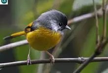 金胸雀鹛是莺科、雀鹛属小型鸟类,体长10-11厘米。头黑色,头顶中央有一道白色中央冠纹,颊和耳羽亦为白色,在黑色的头部极为醒目。上体深灰沾绿。两翅黑色,外侧飞羽有黄色外缘和白色端斑;尾凸状、黑色。…全部>>