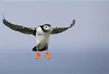 角海鹦:是鸻形目海雀科的鸟类,体重581-648克,体长约32厘米,翼展18-20厘米。是一种身体结实的鸟类,蹼脚、翅膀短,擅长游泳捕鱼,而在陆地上行走时则显得僵硬、步履蹒跚。有一张大嘴巴,呈三角形…全部>>