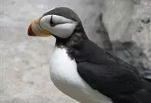 角海鹦:是鸻形目海雀科的鸟类,体重581-648克,体长约32厘米,翼展18-20厘米。是一种身体结实的鸟类,蹼脚、翅膀短,擅长游泳捕鱼,而在陆地上行走时则显得僵硬、步履蹒跚。有一张大嘴巴,呈三角形…全部>>