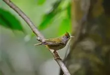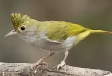 白腹凤鹛是绿鹃科、绿凤鹛属的小型鸟类,体长10-12厘米。上体从头到尾黄绿色,有短的羽冠,头顶微具黑色羽轴纹;眼先、眼周,耳羽和下体灰白色,尾下覆羽黄色。虹膜褐色或红褐色,上嘴浅褐色或肉褐色,…全部>>