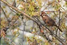 白颊噪鹛是雀形目噪鹛科噪鹛属鸟类,又称土画眉、小画眉、小噪鹃。成鸟额至头顶栗褐色,长眉纹、眼先和颊纹棕白色,眼后至耳羽深褐色,…全部>>