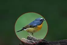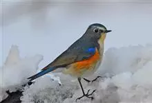 红胁蓝尾鸲俗名:蓝点冈子、蓝尾巴根子、蓝尾杰、蓝尾欧鸲。体型略小而喉白的鸲。特征为橘黄色两胁与白色腹部及臀成对比。雄鸟上体蓝色,眉纹白;亚成鸟及雌鸟褐色,尾蓝。…全部>>