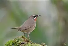 红点颏:是鸟纲、鹟科的鸣禽。又名西伯利亚歌鸲。体长14-17厘米,体重16-27克。雄鸟头部、上体主要为橄榄褐色。眉纹白色。颏部、喉部红色,周围有黑色狭纹。胸部灰色,腹部白色。雌鸟颏部、喉部不呈赤红色,…全部>>