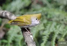 白腹凤鹛是绿鹃科、绿凤鹛属的小型鸟类,体长10-12厘米。上体从头到尾黄绿色,有短的羽冠,头顶微具黑色羽轴纹;眼先、眼周,耳羽和下体灰白色,尾下覆羽黄色。虹膜褐色或红褐色,上嘴浅褐色或肉褐色,…全部>>