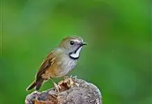 白喉姬鹟:体长11-13厘米,是一种体型小的橄榄褐色鹟。特征为颏及喉白色且成胸兜,缘以黑色的髭纹及项纹。上体红褐色,前额和一相连的短的眉纹白色,眼先、耳覆羽和头侧灰褐色而杂白色,颏、喉白色,…全部>>