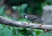 黑喉噪鹛是噪鹛属鸟类。体长24-29厘米,体重75-90克。雄鸟前额、眼先、眼周和眼后纹以及颊、须和喉黑色;黑色前额和蓝灰色头顶之间有道白色细斑;颈侧具椭圆形白斑,…全部>>