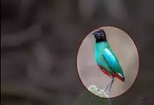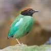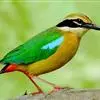 绿胸八色鸫:是雀形目八色鸫科的鸟类,共有12个亚种。体长为16-18厘米,体重65-69克。体型圆胖,尾短,腿长。头黑,上体绿色,两翼深色而具白色斑纹,头顶至后枕深褐,胸及腹部苹果绿,臀亮红。…全部>>