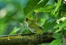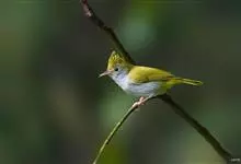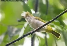白腹凤鹛是绿鹃科、绿凤鹛属的小型鸟类,体长10-12厘米。上体从头到尾黄绿色,有短的羽冠,头顶微具黑色羽轴纹;眼先、眼周,耳羽和下体灰白色,尾下覆羽黄色。虹膜褐色或红褐色,上嘴浅褐色或肉褐色,…全部>>
