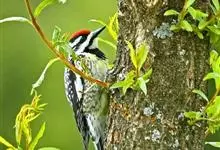 星头啄木鸟是䴕形目啄木鸟科啄木鸟属鸟类,又称北啄木鸟、红星头喯打木、红星啄木等。头顶灰褐色,虹膜褐色,嘴铅灰色,脚灰黑色。雄鸟眼后上方具红色条纹,宽的白色眉纹一直延伸到颈侧,后颈、上背和肩黑色,…全部>>