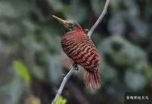 斑姬啄木鸟是鴷形目啄木鸟科姬啄木鸟属鸟类,又叫姬啄木鸟、小啄木鸟。体长9-10厘米。嘴尖而略粗壮,灰黑色;额棕色,向颈后逐渐过渡至橄榄绿色;眉纹白色,过眼纹黑褐色,其下有一白纹,…全部>>