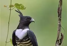 黑冠鹃隼为鹰科、鹃隼属的鸟类,是一种中小型猛禽,体长30-33厘米,体重178-217克。头顶具有长而垂直竖立的蓝黑色冠羽,极为显著。从上面看通体黑色,次级飞羽上有一宽的,极为显著的白色横带。…全部>>