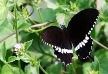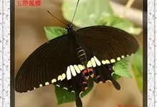 玉斑凤蝶Papilio helenus 别名白纹凤蝶,是凤蝶科凤蝶属美凤蝶亚属大型种类。雌雄同型;体翅皆黑色,后翅正面中室外有3个并列的白色斑,亚外缘有1列模糊的新月形红色斑,…全部>>