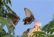玉带凤蝶是鳞翅目凤蝶科凤蝶属昆虫,又称白带凤蝶、黑凤蝶、缟凤蝶、梁山伯凤蝶。雄蝶前翅外缘、后翅中央有7个大型黄白斑,排列成带。老熟幼虫深绿色,头部黄褐色,后胸前缘有1条齿状的黑色线状横纹,…全部>>