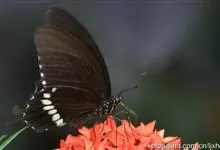 玉斑凤蝶Papilio helenus 别名白纹凤蝶,是凤蝶科凤蝶属美凤蝶亚属大型种类。雌雄同型;体翅皆黑色,后翅正面中室外有3个并列的白色斑,亚外缘有1列模糊的新月形红色斑,…全部>>