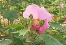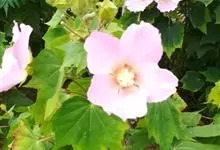 木芙蓉,锦葵科木槿属落叶灌木或小乔木。小枝上有细绒毛;叶片为卵状心形,托叶为披针形,常早落;花单生,花萼为钟形,花冠初为白色或淡红色,后逐渐变为深红色;果实为扁球形,有淡黄色的毛附着。花期8到10月。…全部>>