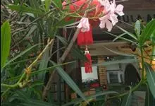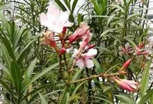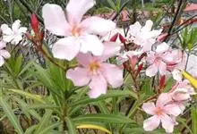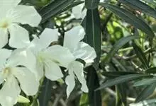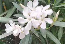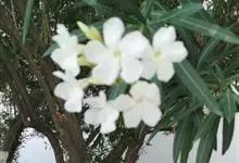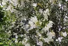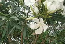 白花夹竹桃是夹竹桃科、夹竹桃属植物夹竹桃的栽培品种。常绿直立大灌木,枝条灰绿色;嫩枝条具稜,被微毛,老时毛脱落。叶3-4枚轮生,下枝为对生,叶面深绿,叶背浅绿色;侧脉纤细平行与中脉成直角;叶柄扁平,…全部>>