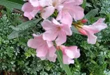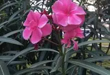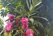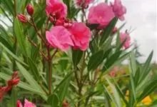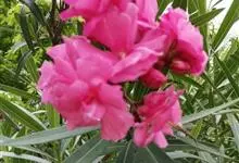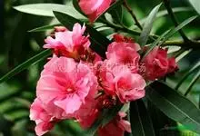 夹竹桃,又名红花夹竹桃、欧洲夹竹桃,是夹竹桃科夹竹桃属的一种常绿直立大灌木,枝条灰绿色,含水液。叶披针形,3叶轮生。聚伞花序顶生,花冠粉红至深红色,花冠漏斗状,有特殊香味。蓇葖果,圆柱形。种子长圆形,…全部>>