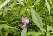 东北凤仙花,凤仙花科凤仙花属一年生草本植物,高可达70厘米。茎细弱,叶互生,菱状卵形或菱状披针形,总花梗腋生,总状花序花3-9朵,花小,黄色或淡紫色;侧生萼片卵形,旗瓣圆形,翼瓣有柄,花药钝。…全部>>