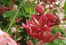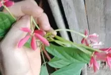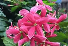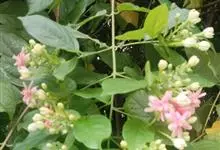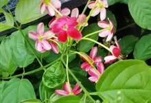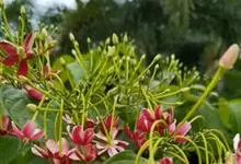 使君子 Jongkind)是使君子科、使君子属攀援灌木,叶对生,椭圆形,两面均被灰白色柔毛。穗状花序,倒挂下垂。花期夏秋。果有五棱,熟时黑色,种子白色。分布于印度、缅甸、菲律宾和中国。喜温润,深根性,…全部>>