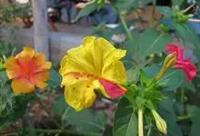 即紫茉莉,英文名:Four-o'clock,Marvel of Peru,为紫茉莉科、紫茉莉属多年生草本植物,一年生栽培。株高50~80cm。根粗壮,茎多分枝而散生。叶对生,卵形或心脏形。花数朵簇生…全部>>
