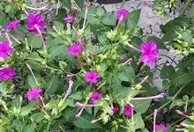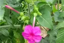 即紫茉莉,英文名:Four-o'clock,Marvel of Peru,为紫茉莉科、紫茉莉属多年生草本植物,一年生栽培。株高50~80cm。根粗壮,茎多分枝而散生。叶对生,卵形或心脏形。花数朵簇生…全部>>