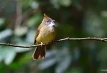 白喉冠鹎:体长20-25厘米。头顶红褐色,有长而细的羽冠、红褐色,头侧灰色。上体橄榄绿黄色,飞羽暗褐色,外翈茶黄色,尾下覆羽皮黄色。…全部>>