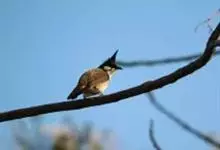 白颊鹎是雀形目鹎科鸟类。体长19—21厘米。雌雄相似。成鸟头部深灰色具一显著的羽冠,白色脸侧具一黑色点状斑纹。颏部、喉部黑色;胸部、腹部、两胁近白色;背部、两翼近灰色;尾下覆羽黄色,尾羽灰色,…全部>>