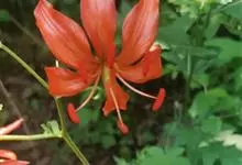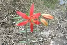 山丹是百合科百合属的多年生草本植物。鳞茎卵形或圆锥形,鳞片长圆形或长卵形,白色;叶散生茎中部,线形,边缘有乳头状突起;花单生或数朵成总状花序,花鲜红色,常无斑点,花被片反卷,…全部>>